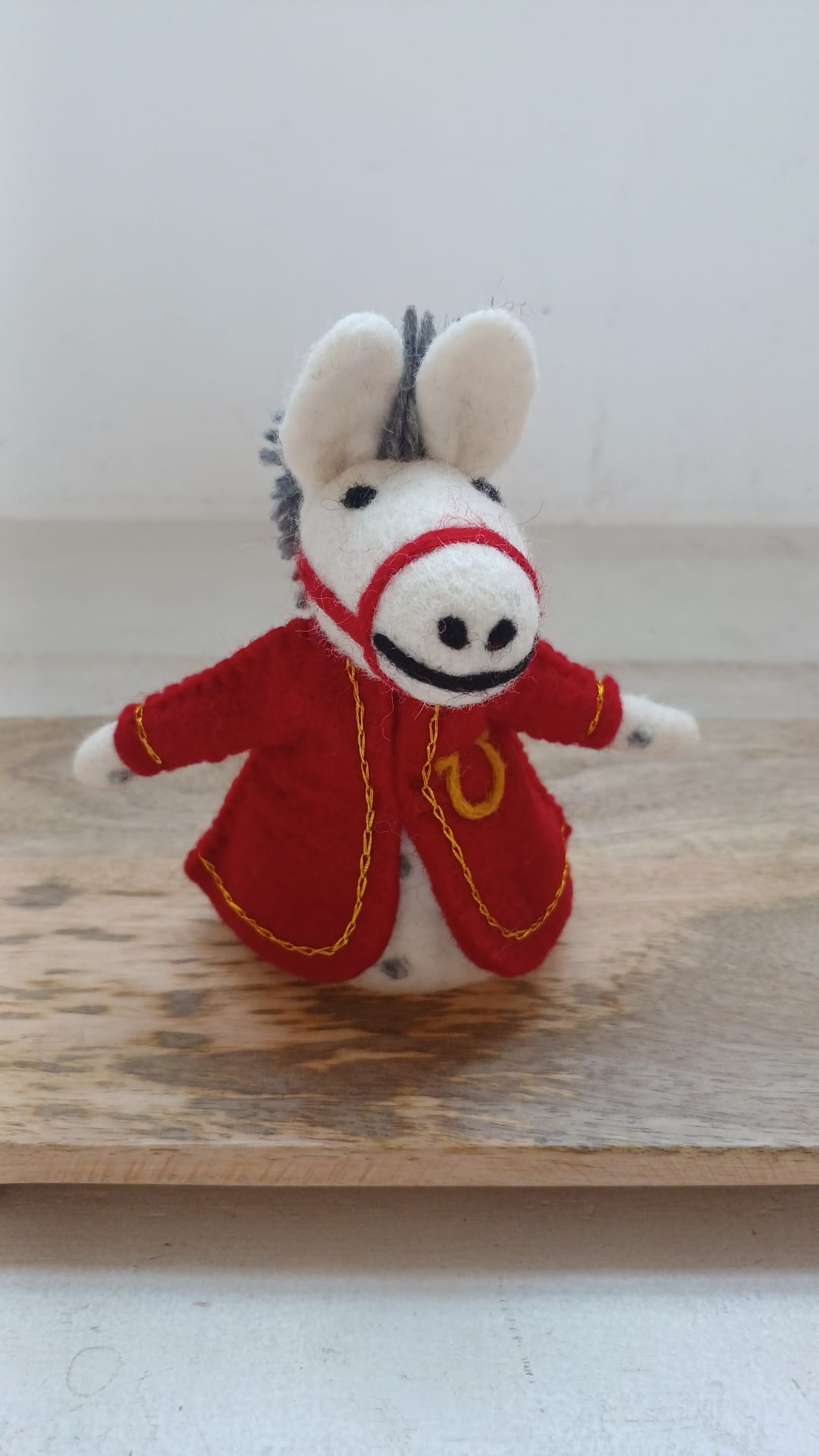 Geweldige paard muis van Sjaal met verhaal, leuk om neer te zetten maar nog leuker om mee te spelen! Handgemaakt van wol vilt door vrouwen uit Nepal. Je kunt de pieten combineren met andere kleur pieten of de sinterklaasmuis en zijn paard.