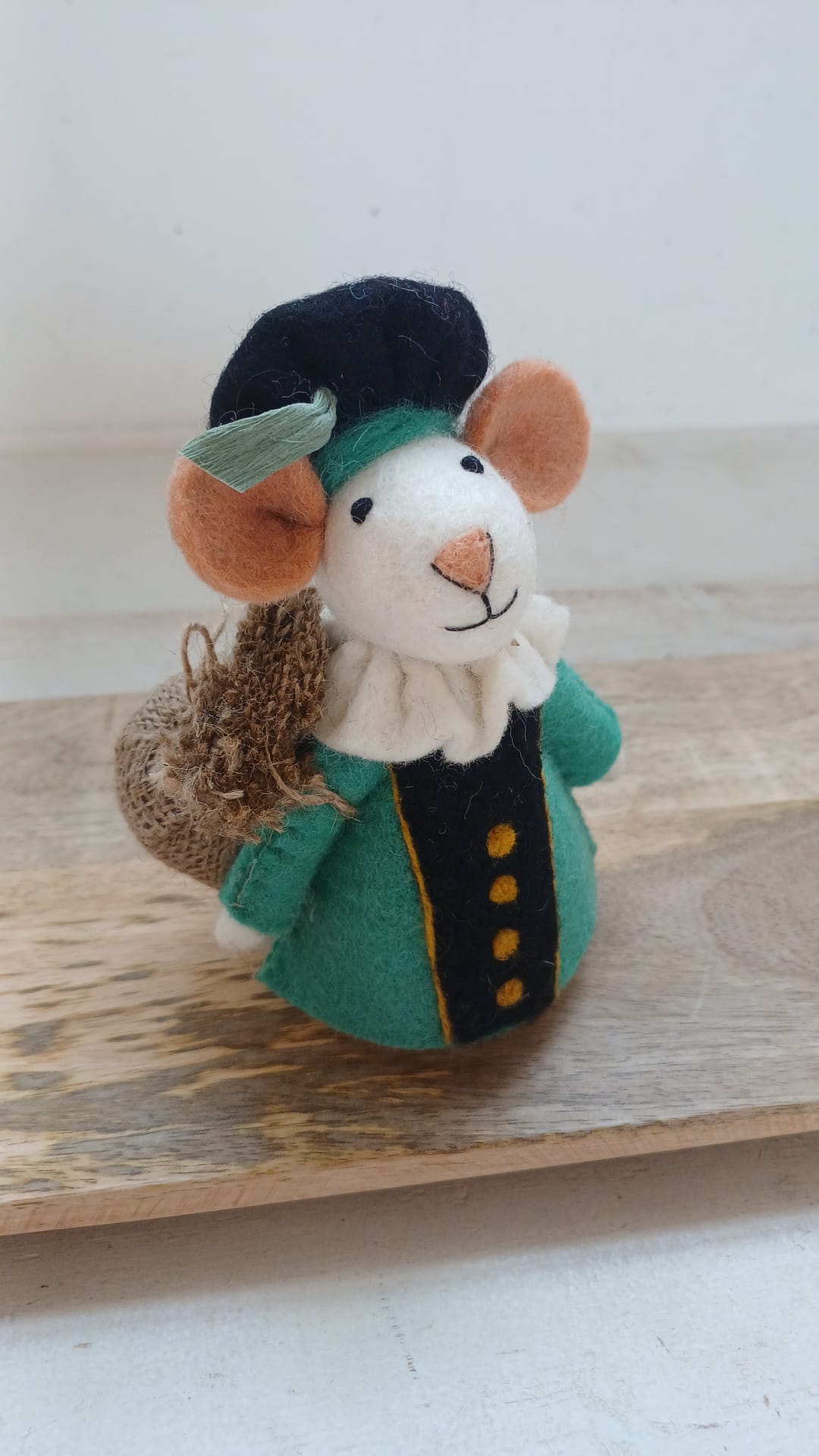 Geweldige Piet muis van Sjaal met verhaal in de kleur turquoise, leuk om neer te zetten maar nog leuker om mee te spelen! Handgemaakt van wol vilt door vrouwen uit Nepal. Je kunt de pieten combineren met andere kleur pieten of de sinterklaasmuis en zijn paard.